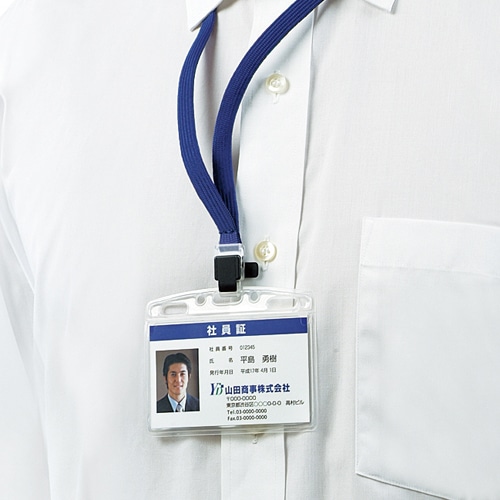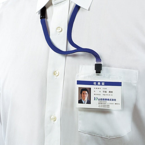 | 商品仕様 | ●サイズ/名刺・IDカード ●色/ケース:透明、ネックストラップ:青 ●適応カードサイズ/タテ56×ヨコ91mm ●中紙/有 ●カード挿入方向/タテ入れ ●チャック/有 ●長さ調節/可 ●安全パーツ/有 ●材質/ケース:R-PP、ネックストラップ:R-PET、フック:PC、ロックカバー・衣服固定クリップ・調節パーツ・事故防止パーツ:R-POM ●ストラップ色/ブルー(系) |
