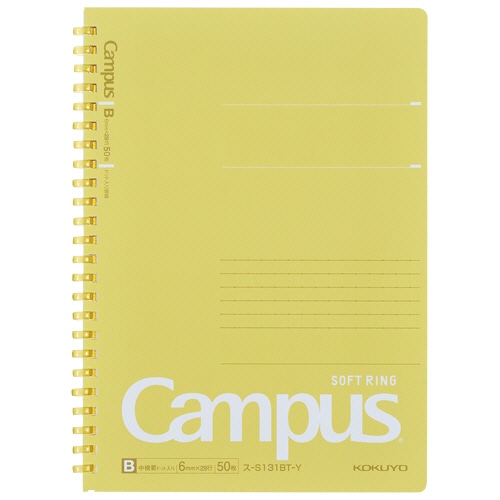 コクヨ キャンパス ソフトリングノート(ドット入り罫線 カットオフ) A5 B罫 50枚 イエロー ス-S131BT-Y 1セット(5冊)