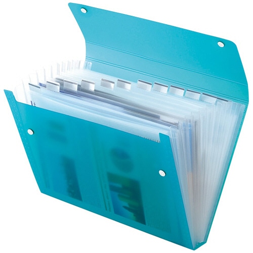 ●タイトル記入でしっかり分類・整理可能なA4、13ポケットの青です。8冊セットです。