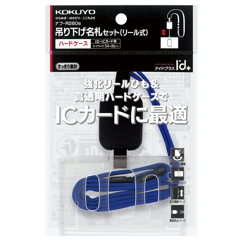 コクヨ 吊り下げ名札セット(リール式・ハードケース)(アイドプラス) ID・ICカード用 青 ナフ-R280B 1セット(10個)