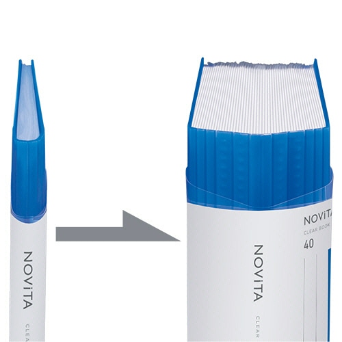 ●背幅が約6倍広がる「ノビータ」。A4タテ・40ポケット、背幅8~50mm、青のクリヤーブック。10冊セットです。