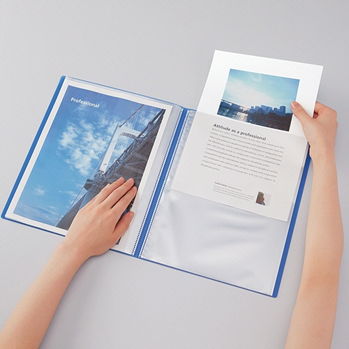 【固定式】書類の量に応じて背幅が変わるから、かさばらずに収容できるクリヤーブック。