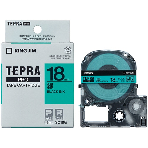 キングジム テプラ PRO テープカートリッジ パステル 18mm 緑/黒文字 SC18G 1セット(5個)
