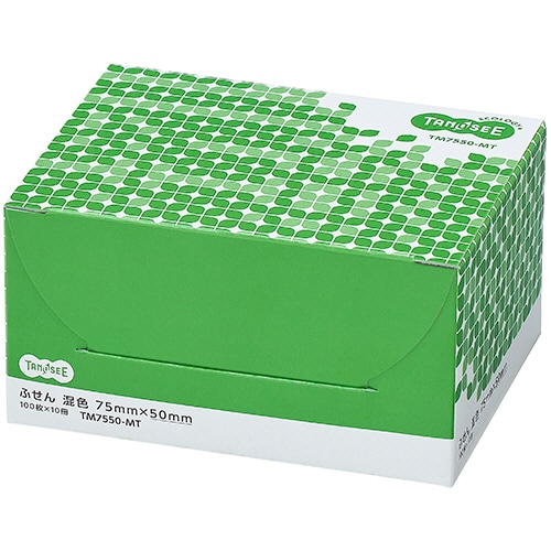 TANOSEE ふせん 75×50mm 4色混色 1セット(50冊:10冊×5パック)