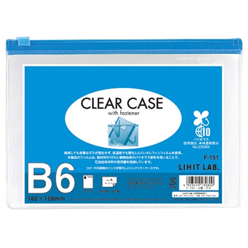 商品仕様 | ●サイズ/B6 ●色/藍 ●寸法/タテ153×ヨコ212mm ●材質/本体・本体透明部:オレフィン(バイオマスポリエチレン含有) ●その他仕様/●マチなし ●収容量:コピー用紙約100枚 ●備考/※印刷物はよく乾かしてから入れてください。長時間印刷物を入れておくとインクが転写される場合があります。 ※仕様変更に伴い、本体が乳白色(半透明)に近い色合いとなります。 ●サ イ ズ/B6 |