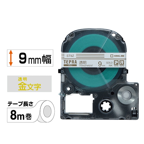 キングジム テプラ PRO テープカートリッジ 9mm 透明/金文字 ST9Z 1セット(5個)
