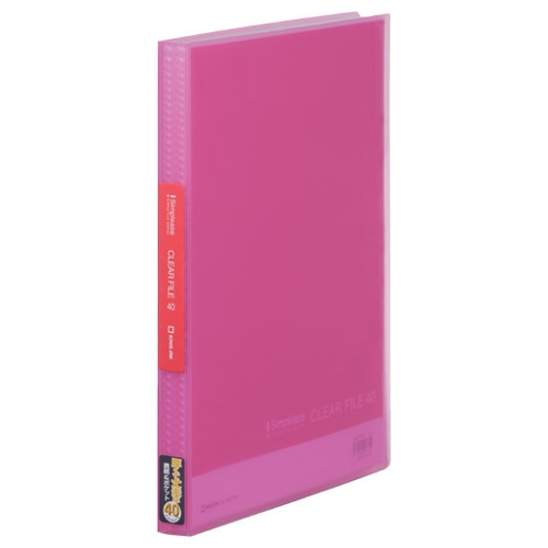 キングジム シンプリーズ クリアーファイル(透明) A4タテ 40ポケット 背幅22mm ピンク 186TSPW-P 1セット(8冊)