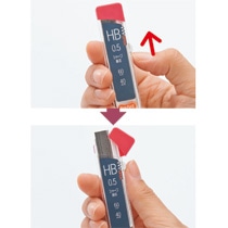 国産芯。ケースはワンタッチで芯の出し入れ可能。