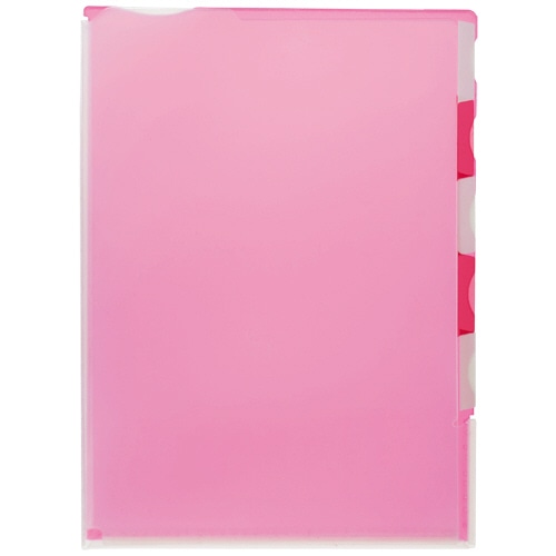 ●A4タテ、ピンクの丈夫なマチ付きクリアホルダー5山インデックスタイプ5枚×4パックです。