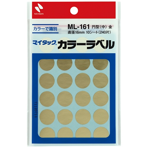 ニチバン マイタック カラーラベル 円型 直径16mm 金 ML-1619 1セット(2400片:240片×10パック)