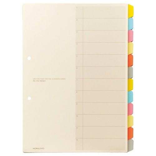 コクヨ カラー仕切カード(ファイル用・12山見出し) A4タテ 2穴 6色+扉紙 シキ-100N 1セット(25組:5組×5パック)