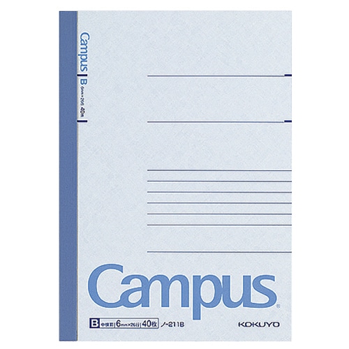 コクヨ キャンパスノート(中横罫) B6 B罫 40枚 ノ-211B 1セット(20冊)