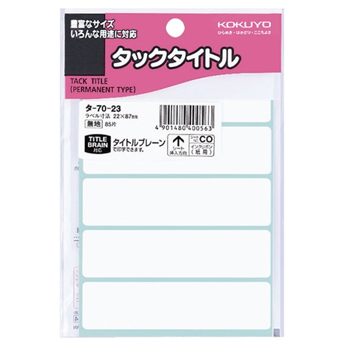 コクヨ タックタイトル 四角 白無地 22×87mm タ-70-23 1セット(850片:85片×10パック)