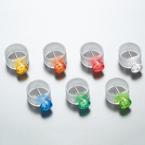 商品仕様 | ●色/7色ミックス ●針サイズ/長さ約10mm×直径 ●材質/ヘッド:PS、リング:エラストマー、針:スチール |