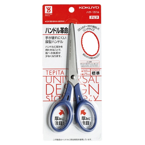 コクヨ ハサミ(テピタ)左右対称タイプ 中 全長165mm 刃渡り75mm 青 ハサ-151B 1セット(10本)