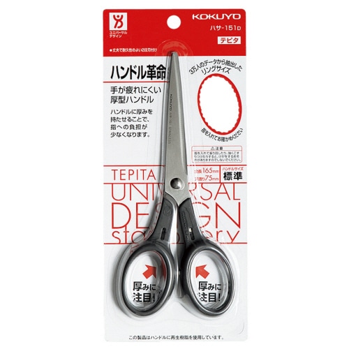 コクヨ ハサミ(テピタ)左右対称タイプ 中 全長165mm 刃渡り75mm 黒 ハサ-151D 1セット(10本)
