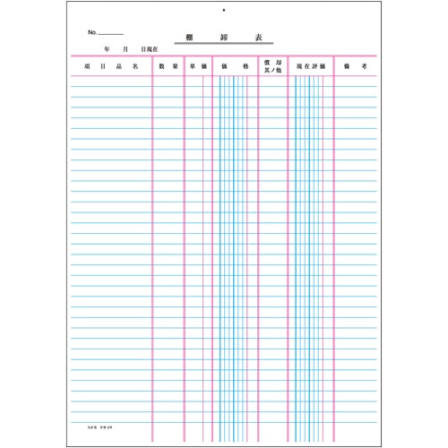 コクヨ 決算用紙 棚卸表 A4 厚口上質紙 33行 20枚 ケサ-24N 1セット(10冊)