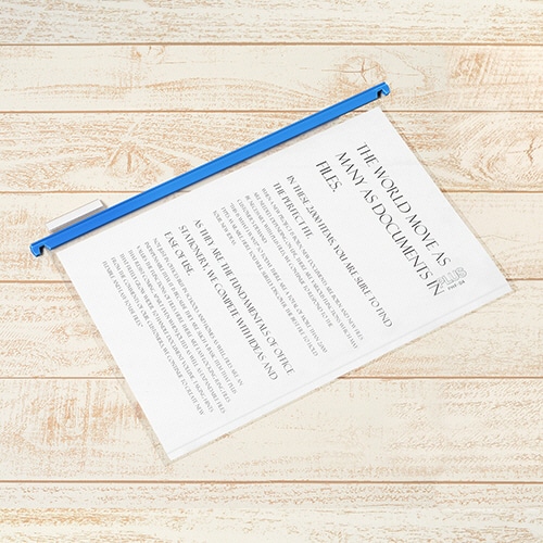 | 商品仕様 | ●サイズ/B4 ●色/ブルー ●レールの長さ/411mm ●寸法/タテ272(+15)×ヨコ378mm ●厚さ/約8mm ●材質/ポリプロピレン(PP) ●付属品/見出し紙10枚 ●備考/※寸法タテは山の高さ含む。 ※色はレールの長さの色です(本体透明) |