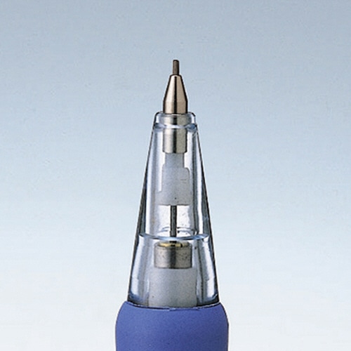 | 商品仕様 | ●軸色/青 ●芯の太さ/0.5mm ●全長/146mm ●最大軸径/11mm ●材質/グリップ:再生エラストマー、軸・消しゴムカバー:R-PMMA、クリップ付受台:R-ABS ●その他仕様/●チップスライド、通気仕様キャップ |