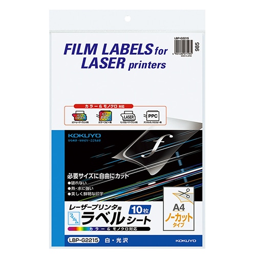 コクヨ カラーレーザー&カラーコピー用フィルムラベル A4 ノーカット 白・光沢 LBP-G2215 1セット(50シート:10シート×5冊)