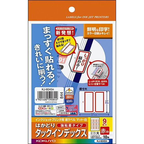 コクヨ インクジェットプリンタ用はかどりタックインデックス(強粘着) はがきサイズ 9面(大) 赤枠 KJ-6045R 1セット(50シート:10シート×5冊)
