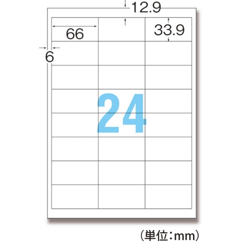 商品仕様 | ●サイズ/A4 ●シートサイズ/210×297mm ●ラベルサイズ/33.9×66mm ●面付け/24面 ●カット内容/3列×8段 ●紙質/上質紙 ●総厚み/約0.135mm ●白色度/約84% ●紙色/白無地 ●備考/※厚紙モード、手差し給紙でお使いください。また、お使いの機種によっては対応しない場合がございます。 ※インクジェットプリンタの場合、にじみが生じる場合がございます。 |