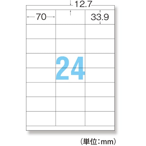 | 商品仕様 | ●サイズ/A4 ●シートサイズ/210×297mm ●ラベルサイズ/33.9×70mm ●面付け/24面 ●カット内容/3列×8段 ●紙質/上質紙 ●総厚み/約0.135mm ●白色度/約84% ●紙色/白無地 ●備考/※厚紙モード、手差し給紙でお使いください。また、お使いの機種によっては対応しない場合がございます。 ※インクジェットプリンタの場合、にじみが生じる場合がございます。 |