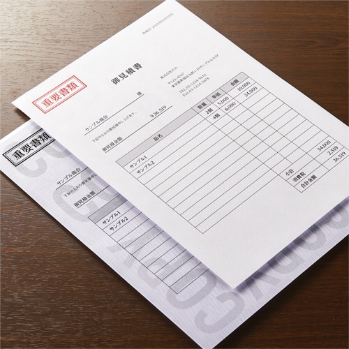 印刷面に、特殊パターンの地紋が印刷されており、原本をコピーすると、複写・COPYの文字が浮き出ます!!