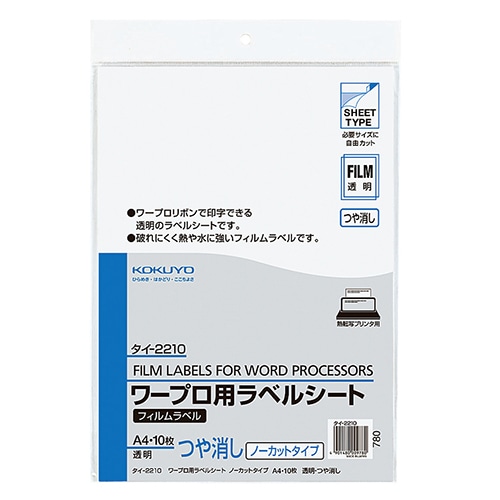 コクヨ ワープロ用フィルムラベル A4 ノーカット 透明・ツヤ消し タイ-2210 1セット(50シート:10シート×5冊)