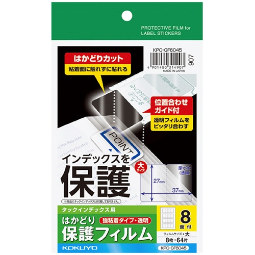 コクヨ タックインデックス用はかどり保護フィルム(強粘着) ハガキ 大 8面 KPC-GF6045 1セット(40シート:8シート×5冊)