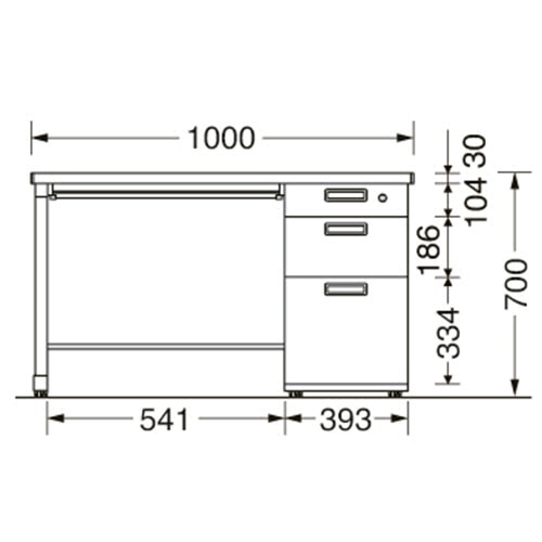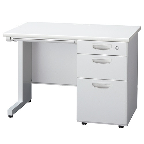 ●右袖が3段の幅1000mmホワイトの片袖机。