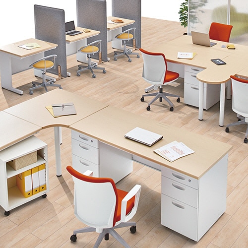 ●材質/天板:スチール・メラミン化粧板(ポストフォーム加工)、本体:スチール(粉体塗装)