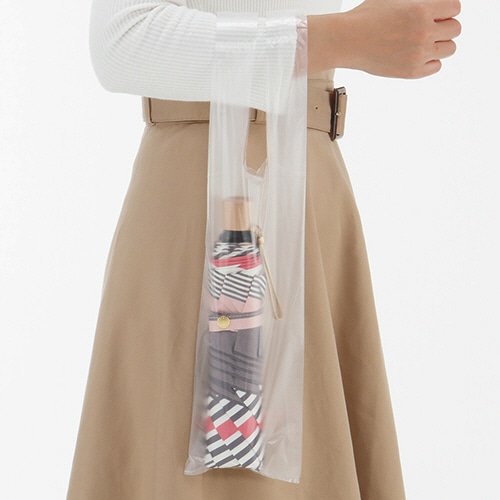 取っ手付で持ち運びやすく、マチ付で折りたたみ傘がスムーズに入れられる。