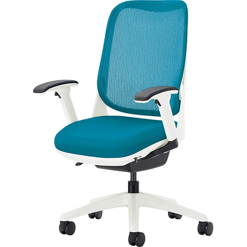 ライオン事務器 (N)オフィスチェアー RIDE<ライド> フレキシブルアームタイプ ホワイトフレーム 脚ベース:ホワイト ターコイズブルー NO.3562F-