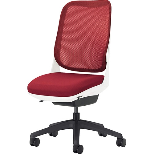 ライオン事務器 (N)オフィスチェアー RIDE<ライド> アームレスタイプ ホワイトフレーム 脚ベース:ブラック チェリーレッド NO.3560F-K 1脚