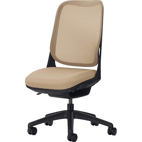 ライオン事務器 (N)オフィスチェアー RIDE<ライド> アームレスタイプ ブラックフレーム 脚ベース:ブラック サンドベージュ NO.3565F-K 1脚