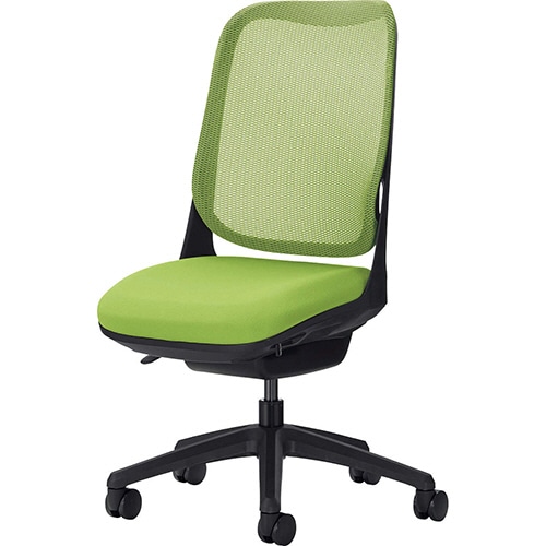 ライオン事務器 (N)オフィスチェアー RIDE<ライド> アームレスタイプ ブラックフレーム 脚ベース:ブラック アップルグリーン NO.3565F-K 1脚