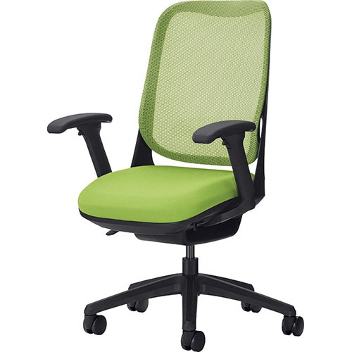 ライオン事務器 (N)オフィスチェアー RIDE<ライド> フレキシブルアームタイプ ブラックフレーム 脚ベース:ブラック アップルグリーン NO.3567F-