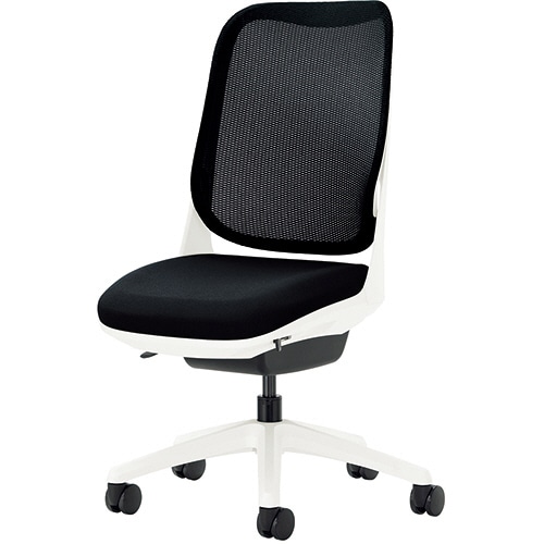 ●アームレスで背座色ブラック(ホワイト脚・フレームはホワイト)のオフィスチェア「ライド」。