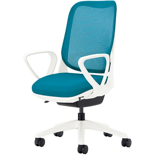 ライオン事務器 (N)オフィスチェアー RIDE<ライド> サークルアームタイプ ホワイトフレーム 脚ベース:ホワイト ターコイズブルー NO.3561F-W