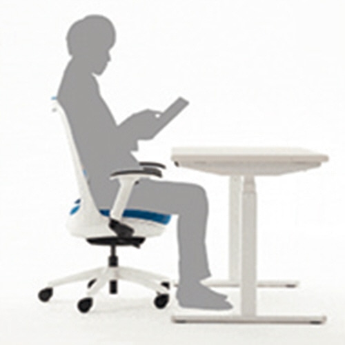 ●思いのままに前後に「負担の少ない正しい姿勢」をサポート!前傾位置:シート部が前方5°まで傾き、机上作業におすすめ。水平位置:一般的チェアーの標準位置。資料の閲覧やタブレットの操作に。後傾位置:シート部が後方5°まで傾き、リラックスできる体勢に。