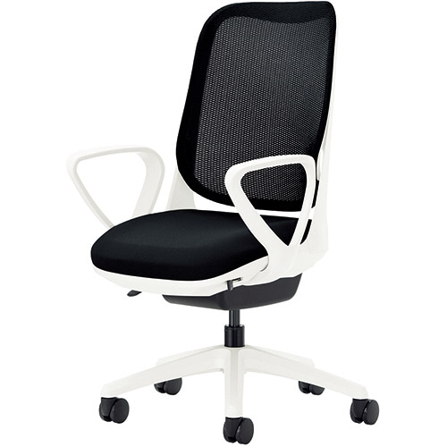●サークルアームで背座色ブラック(ホワイト脚・フレームはホワイト)のオフィスチェア「ライド」。