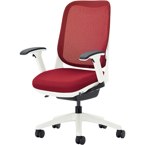 ライオン事務器 (N)オフィスチェアー RIDE<ライド> フレキシブルアームタイプ ホワイトフレーム 脚ベース:ホワイト チェリーレッド NO.3562F-W