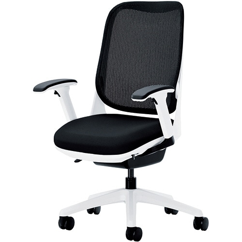 ライオン事務器 (N)オフィスチェアー RIDE<ライド> フレキシブルアームタイプ ホワイトフレーム 脚ベース:ホワイト ブラック NO.3562F-W 1脚