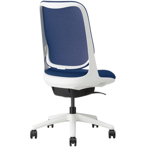 ●アームレスで背座色コズミックブルー(ブラック脚・フレームはホワイト)のオフィスチェア「ライド」。