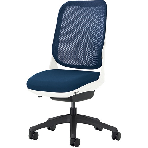 ライオン事務器 (N)オフィスチェアー RIDE<ライド> アームレスタイプ ホワイトフレーム 脚ベース:ブラック コズミックブルー NO.3560F-K 1脚