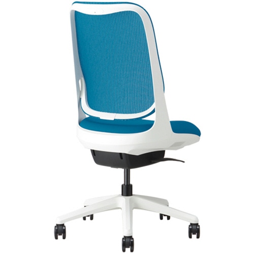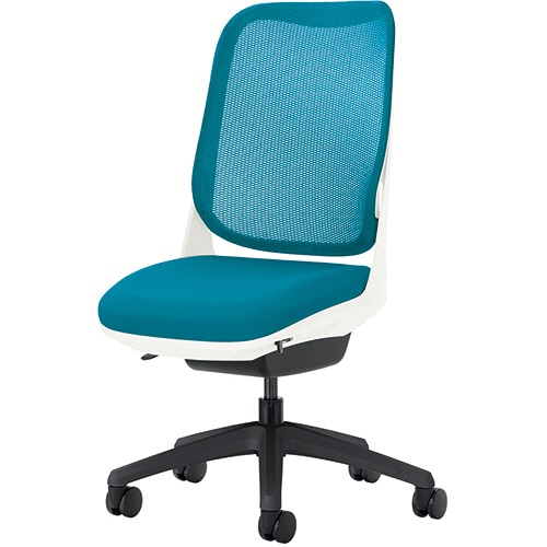 ライオン事務器 (N)オフィスチェアー RIDE<ライド> アームレスタイプ ホワイトフレーム 脚ベース:ブラック ターコイズブルー NO.3560F-K 1脚