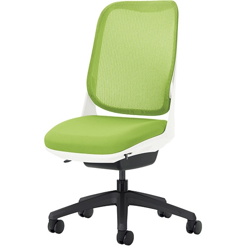 ライオン事務器 (N)オフィスチェアー RIDE<ライド> アームレスタイプ ホワイトフレーム 脚ベース:ブラック アップルグリーン NO.3560F-K 1脚