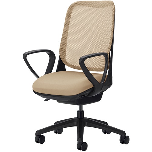 ライオン事務器 (N)オフィスチェアー RIDE<ライド> サークルアームタイプ ブラックフレーム 脚ベース:ブラック サンドベージュ NO.3566F-K 1