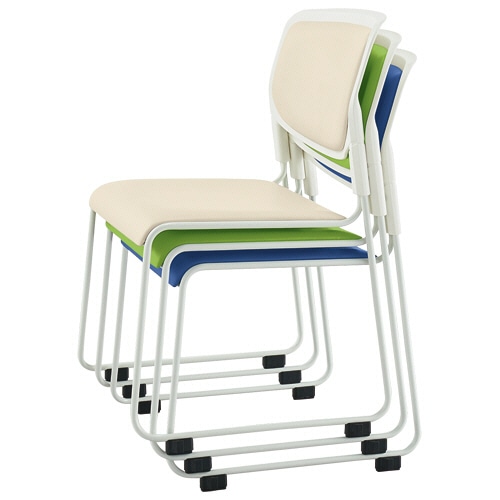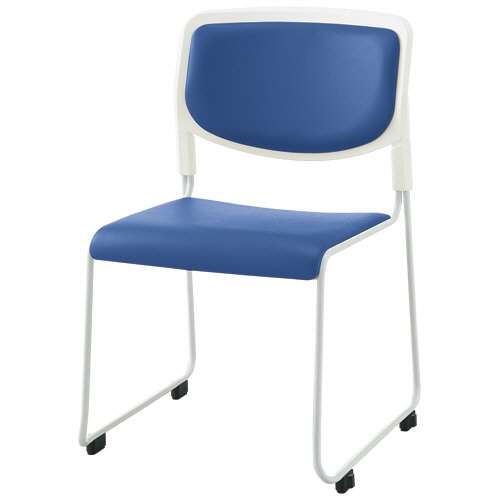 ●背と座は弾力性の高いウレタンフォームを使用したスタッキングチェア。色はブルーです。